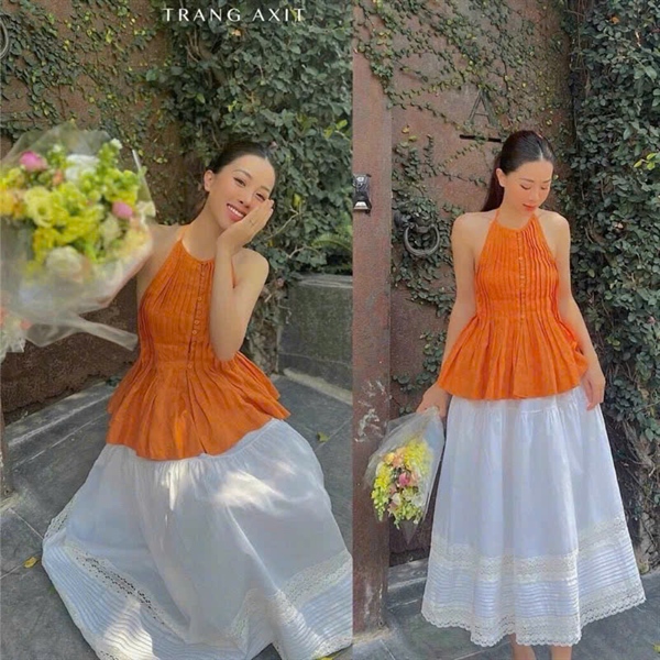 Áo yếm xếp li Cam – Cái