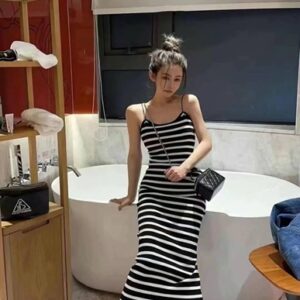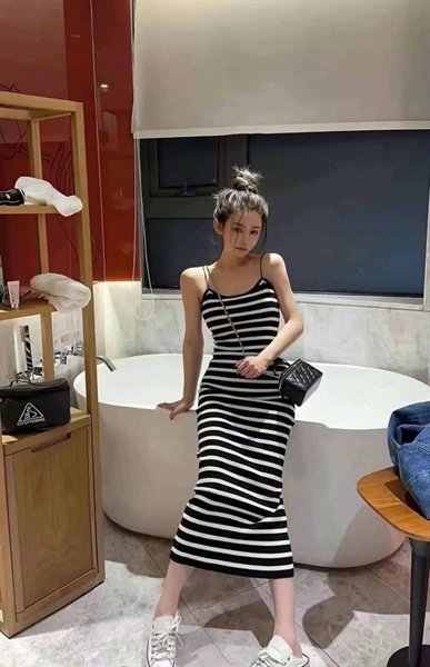 Đầm body 2d len sọc Đen – Cái