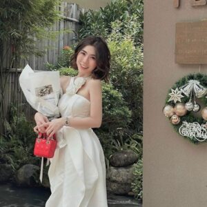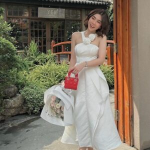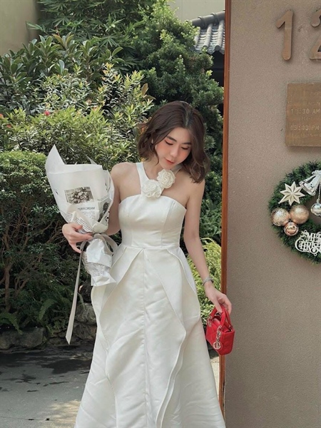 Đầm cổ yếm Hoa Hồng dài TK Trắng