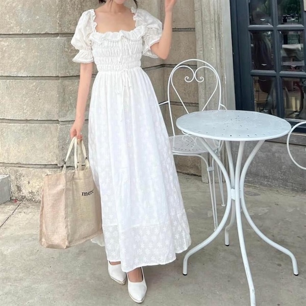 Đầm phối bèo nhún eo 1815 SM – Cái