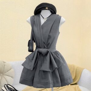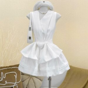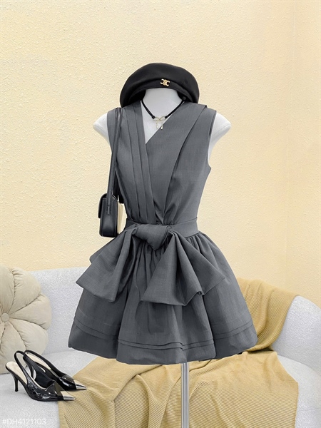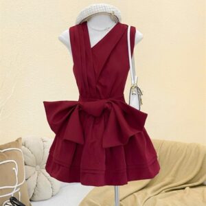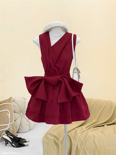 Đầm thắt nơ đỏ V xéo
