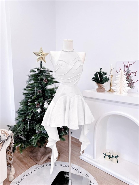 Đầm thiết kế phối yếm xếp bèo Trắng(3mau) – Cái
