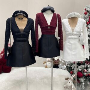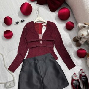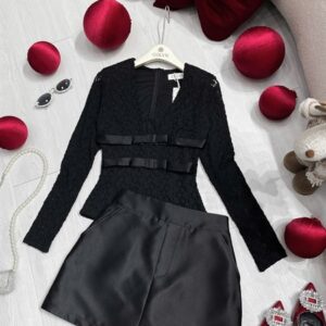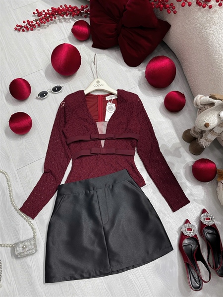 Set áo ren V 2 nơ cv A