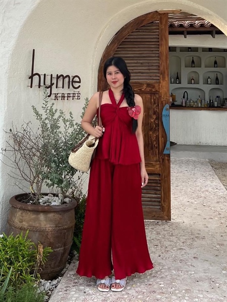Set áo yếm xoắn ngực dập ly Đỏ – Cái