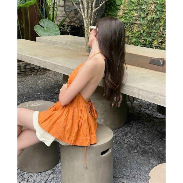 Áo yếm xếp li Cam – Cái