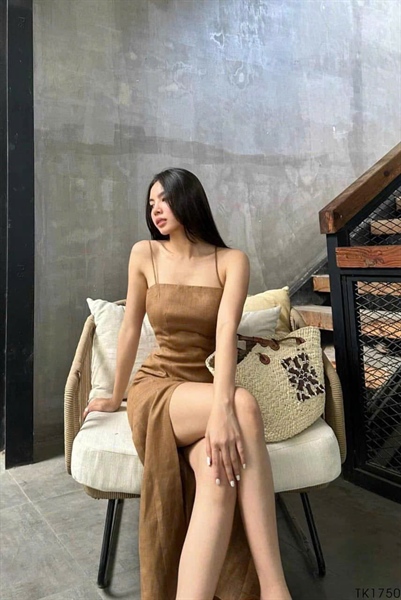 Đầm 2d xẻ tà dài Nude(N-Đ)SML