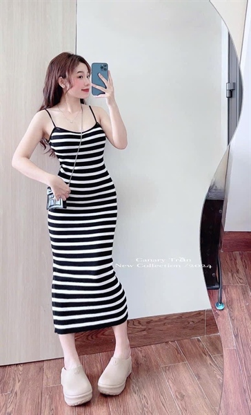 Đầm body 2d len sọc Đen – Cái