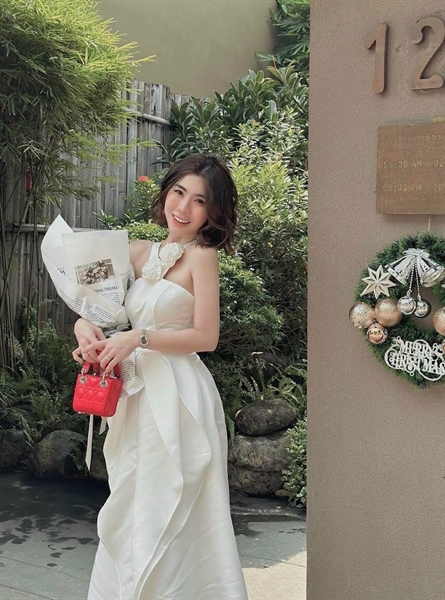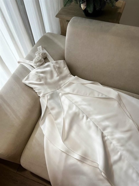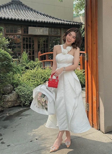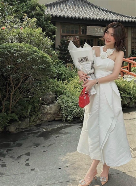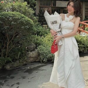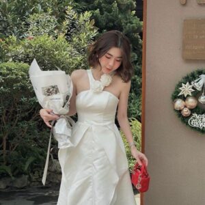Đầm cổ yếm Hoa Hồng dài TK Trắng