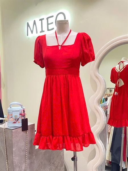 Đầm đỏ tay con hở lưng – Cái