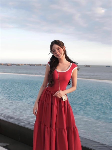 Đầm midi chạy viền sn Đỏ M – Cái