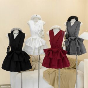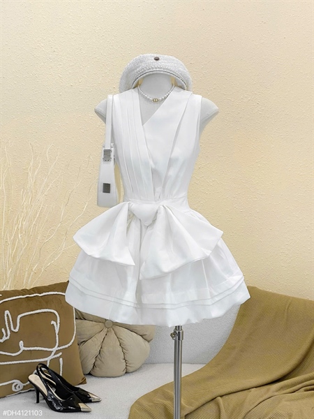 Đầm thắt nơ đỏ V xéo