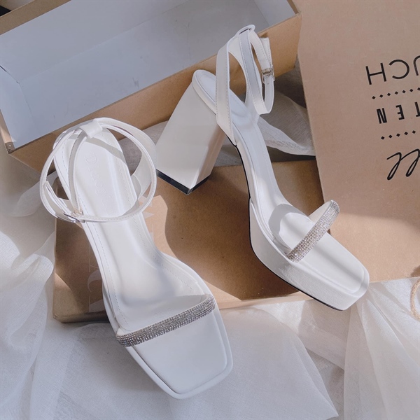 Gót sandal Trắng đúp 1 quai đá – Cặp