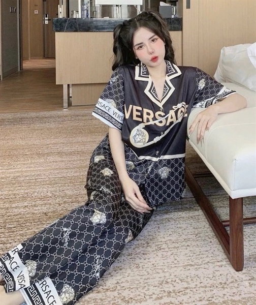 Pijama xước Sam < 58kg dài ngắn Versace Đen - Cái