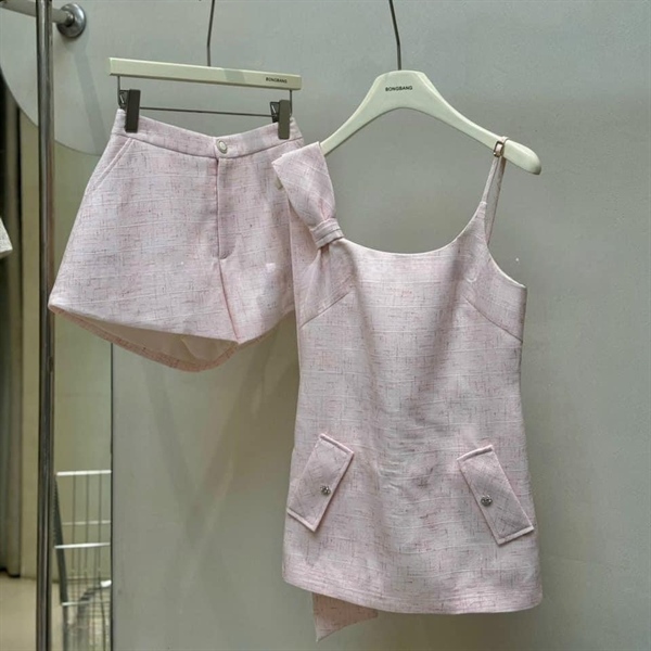 Set 2d vai nơ tà dài kèm short Hồng – Cái