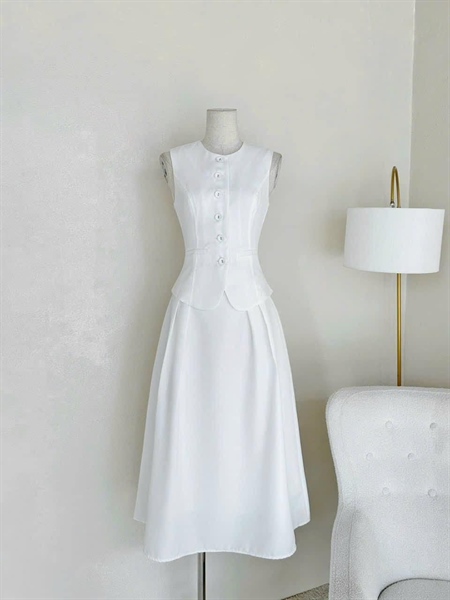 Set áo 6 nút cv dài 3741 Trắng.S – Cái