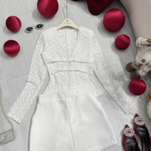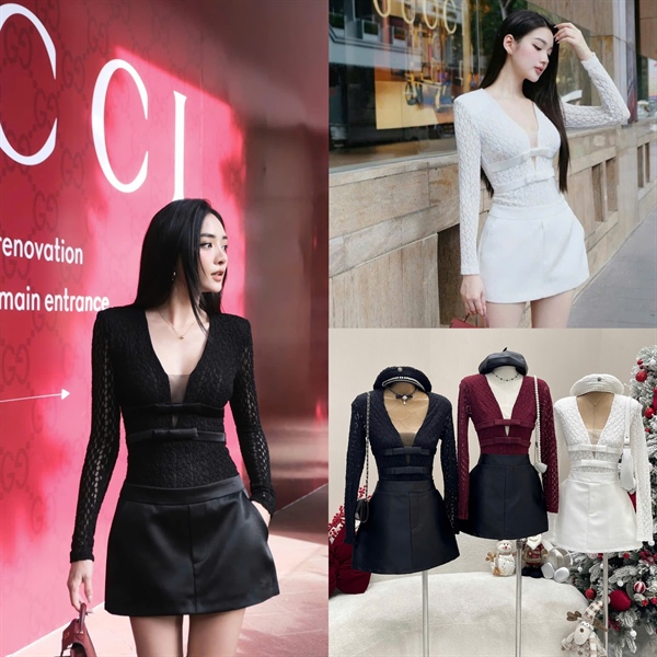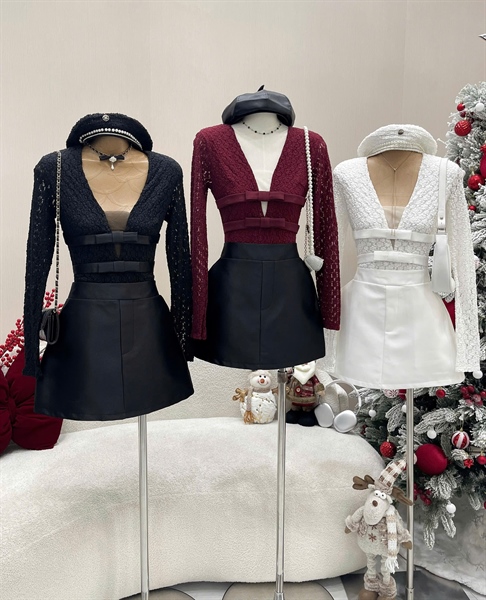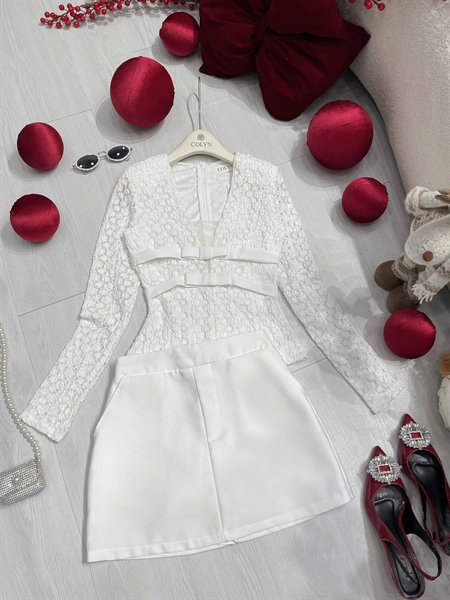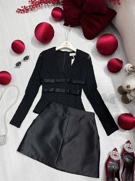 Set áo ren V 2 nơ cv A