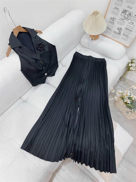 Set áo vest sn+quần dập li Đen.M(Đ-N) – Cái
