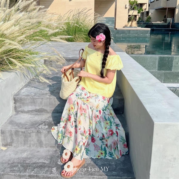 Set trễ vai phồng cv hoa maxi Vàng tk – Cái
