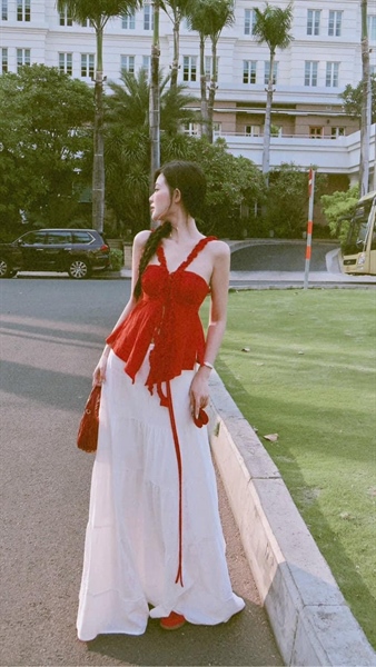 Set yếm 2d V nhúng cv midi Đỏ – Cái