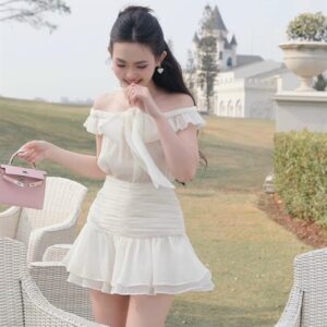 Áo trễ vai chun eo Xanh(Đ-H-X) - Cái